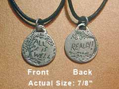 The front of the pendant states a powerful intention "All Is Well," a core message in so many spiritual teachings, and features the image of a tree ...how peaceful to sit and contemplate the message that "All Is Well" under a strong, old graceful tree.